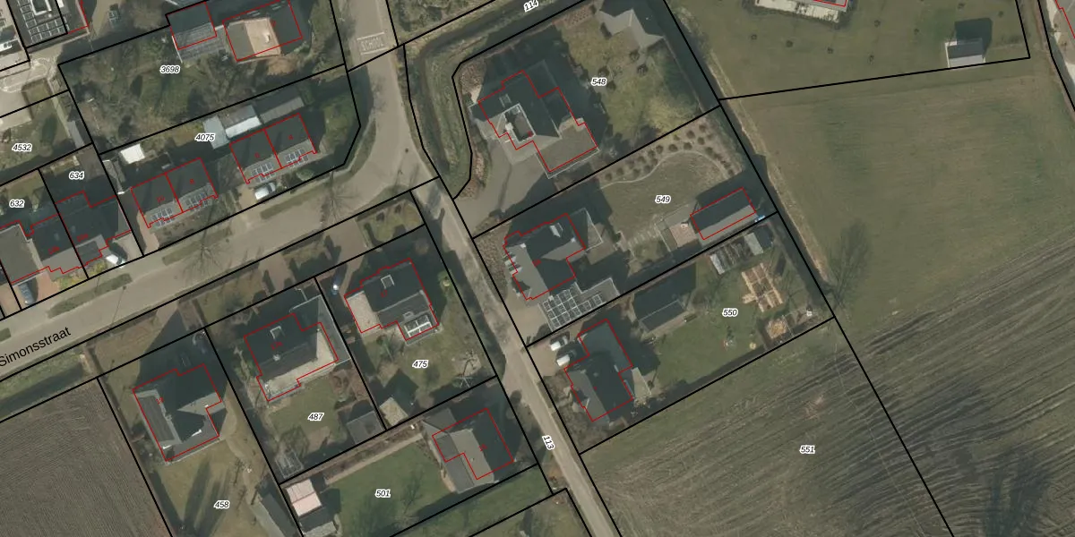 Simonsstraat 5-a is gelegen op kadastraal perceel SVN01R549. Deze kadastrale aanduiding is uniek en wordt gebruikt door het Kadaster om eigendomsrechten en andere zakelijke rechten vast te leggen. Het perceel maakt onderdeel uit van de kadastrale gemeente Sevenum.