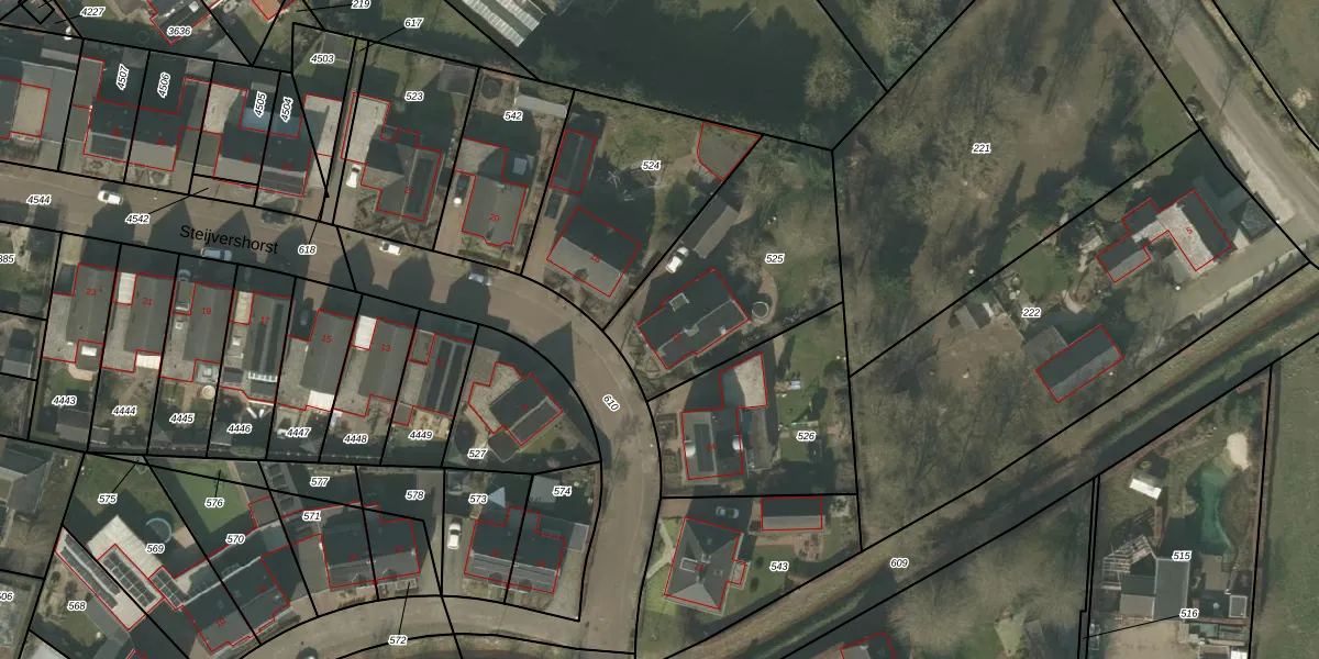 Het perceel waarop Steijvershorst 16 staat heeft een oppervlakte van 814 m². Dit is een groot perceel. De perceeloppervlakte wordt geregistreerd door het Kadaster. Gedetailleerde informatie over de maten van dit perceel kunt u vinden in het rapport Kadastrale kaart met maatvoering van Steijvershorst 16.