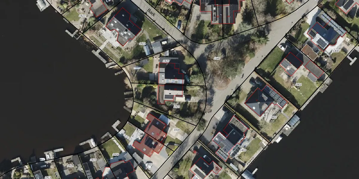Gebruik de zoekbalk of klik op een perceel voor informatie over de adressen binnen dit perceel.