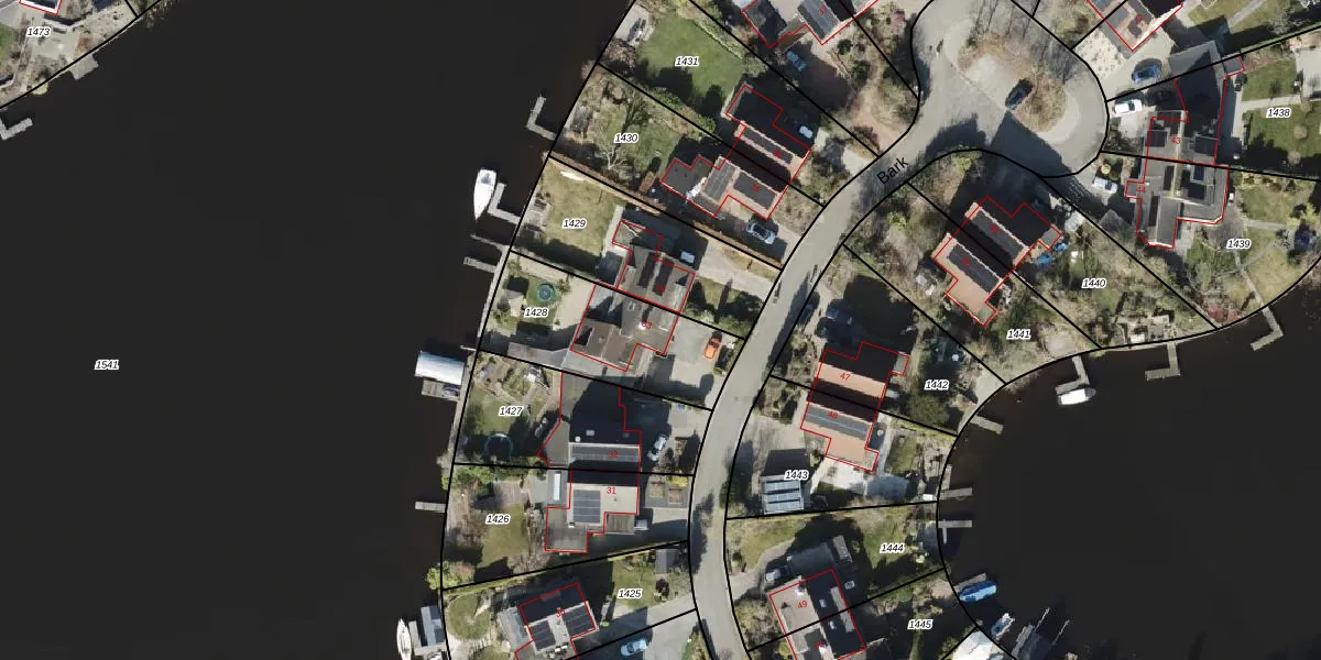 Het perceel waarop Bark 33 staat heeft een oppervlakte van 515 m². Dit is een groot perceel. De perceeloppervlakte wordt geregistreerd door het Kadaster. Gedetailleerde informatie over de maten van dit perceel kunt u vinden in het rapport Kadastrale kaart met maatvoering van Bark 33.