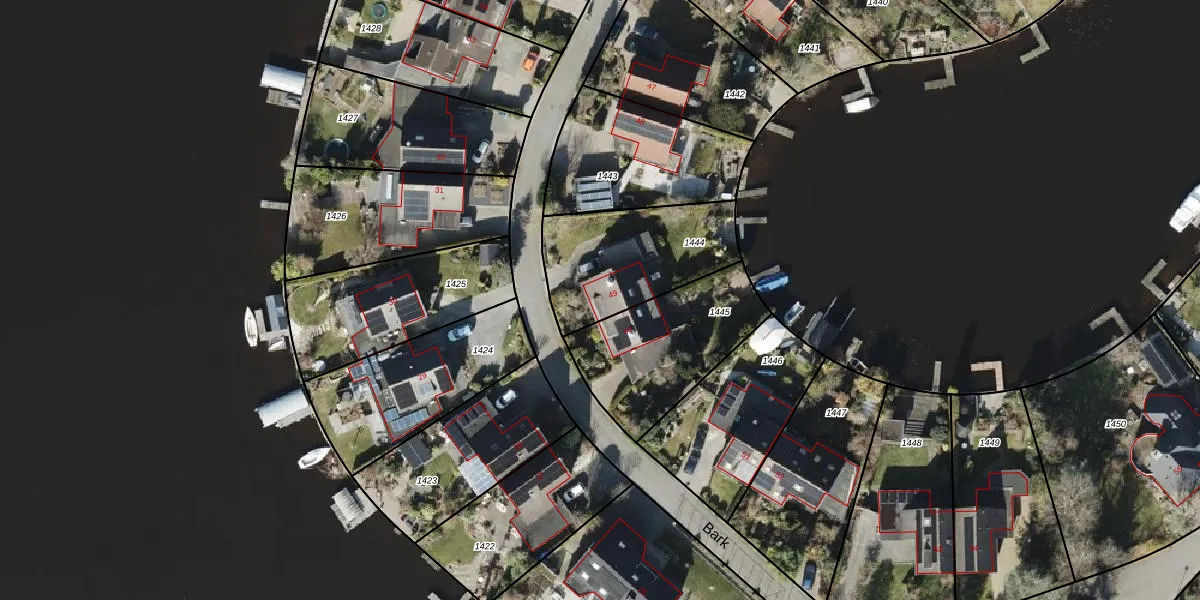 Het perceel waarop Bark 49 staat heeft een oppervlakte van 495 m². Dit is een groot perceel. De perceeloppervlakte wordt geregistreerd door het Kadaster. Gedetailleerde informatie over de maten van dit perceel kunt u vinden in het rapport Kadastrale kaart met maatvoering van Bark 49.