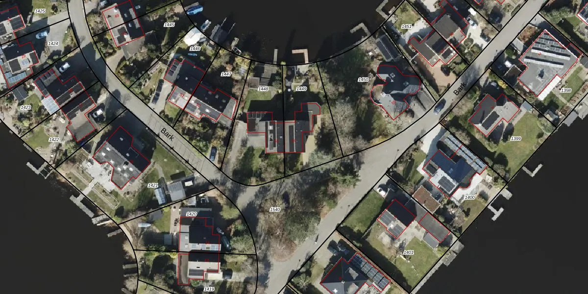 Het perceel waarop Bark 54 staat heeft een oppervlakte van 570 m². Dit is een groot perceel. De perceeloppervlakte wordt geregistreerd door het Kadaster. Gedetailleerde informatie over de maten van dit perceel kunt u vinden in het rapport Kadastrale kaart met maatvoering van Bark 54.