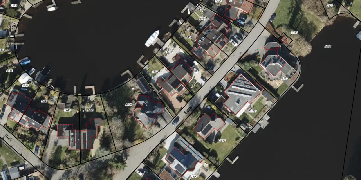 Het perceel waarop Bark 57 staat heeft een oppervlakte van 450 m². Dit is een groot perceel. De perceeloppervlakte wordt geregistreerd door het Kadaster. Gedetailleerde informatie over de maten van dit perceel kunt u vinden in het rapport Kadastrale kaart met maatvoering van Bark 57.
