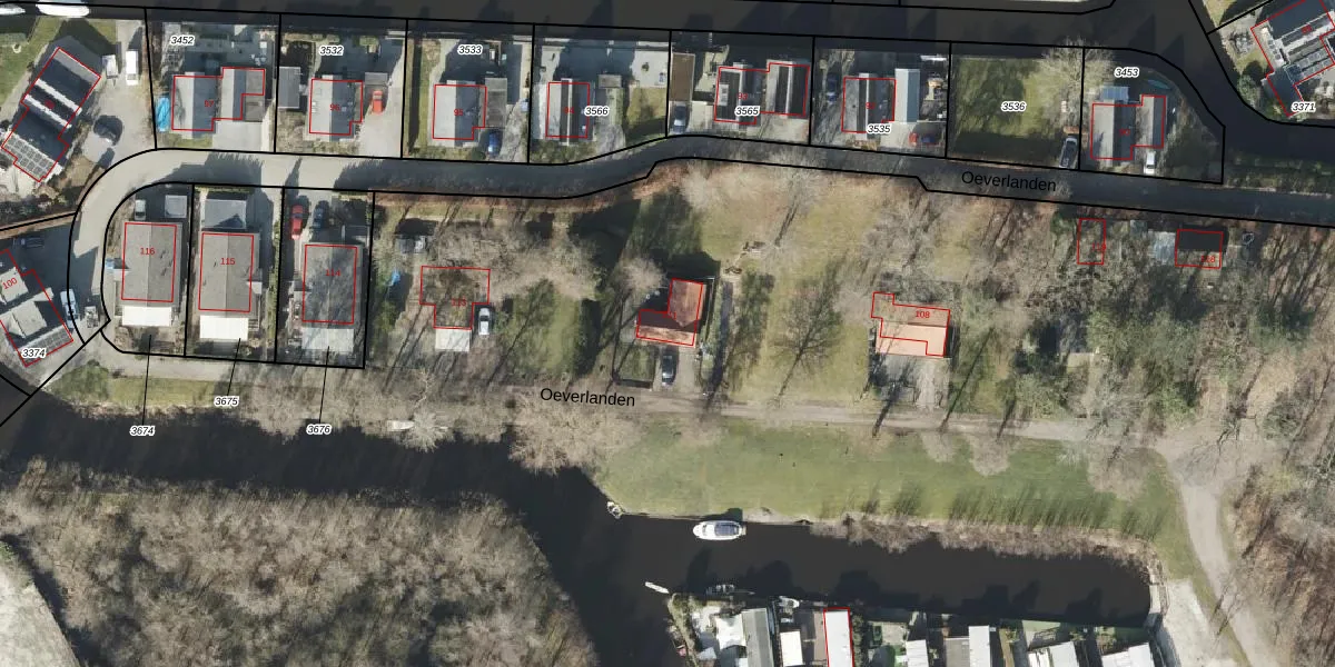 Het perceel waarop Oeverlanden 111 staat heeft een oppervlakte van 6,5 ha. Dit is een zeer groot perceel. De perceeloppervlakte wordt geregistreerd door het Kadaster. Gedetailleerde informatie over de maten van dit perceel kunt u vinden in het rapport Kadastrale kaart met maatvoering van Oeverlanden 111.