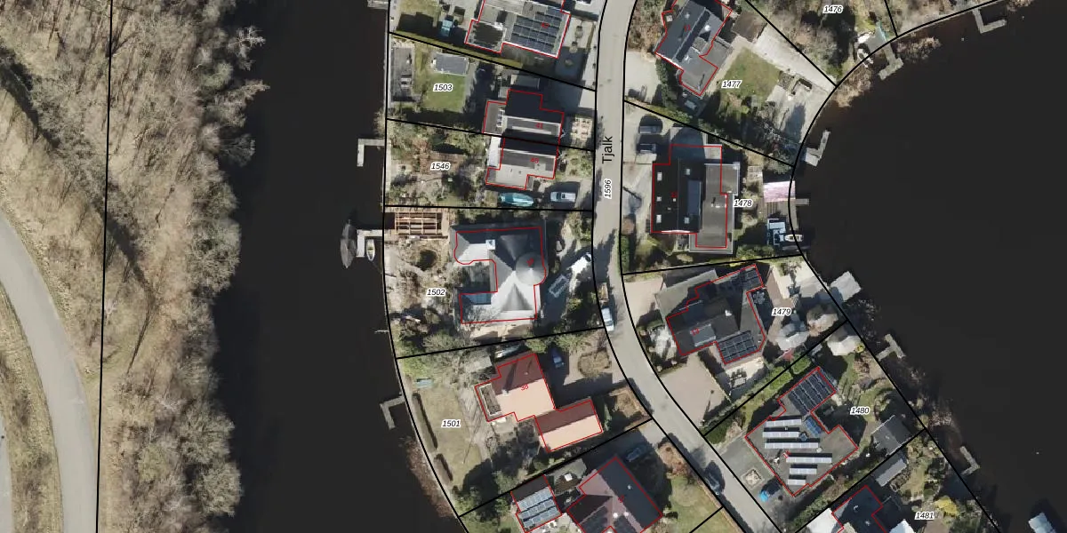 Het perceel waarop Tjalk 39 staat heeft een oppervlakte van 995 m². Dit is een groot perceel. De perceeloppervlakte wordt geregistreerd door het Kadaster. Gedetailleerde informatie over de maten van dit perceel kunt u vinden in het rapport Kadastrale kaart met maatvoering van Tjalk 39.