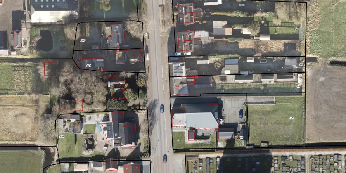 Gebruik de zoekbalk of klik op een perceel voor informatie over de adressen binnen dit perceel.