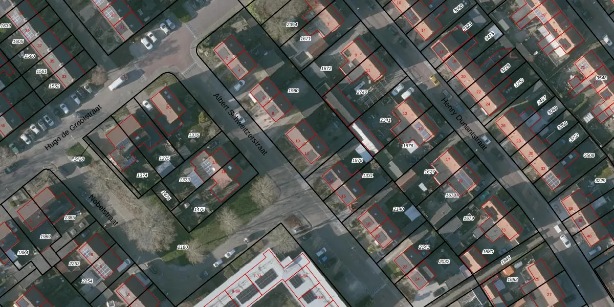 Het perceel waarop Albert Schweitzerstraat 12 staat heeft een oppervlakte van 1217 m². Dit is een zeer groot perceel. De perceeloppervlakte wordt geregistreerd door het Kadaster. Gedetailleerde informatie over de maten van dit perceel kunt u vinden in het rapport Kadastrale kaart met maatvoering van Albert Schweitzerstraat 12.