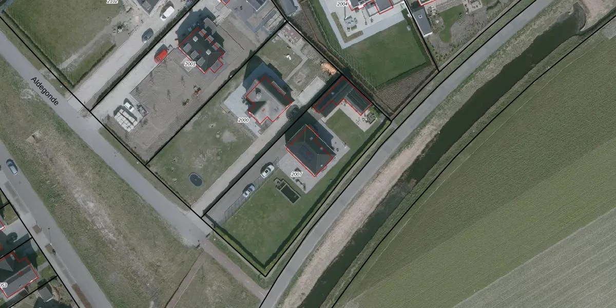 Het perceel waarop Aldegonde 4 staat heeft een oppervlakte van 1625 m². Dit is een zeer groot perceel. De perceeloppervlakte wordt geregistreerd door het Kadaster. Gedetailleerde informatie over de maten van dit perceel kunt u vinden in het rapport Kadastrale kaart met maatvoering van Aldegonde 4.