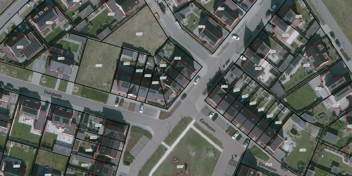 Het perceel waarop het adres ligt is KNG00-O-2077. De afkorting 'KNG00' staat voor kadastrale gemeente Kruiningen. De gemiddelde perceelgrootte in Kruiningen is 1,5 ha. Dit perceel is kleiner: de perceeloppervlakte bedraagt 160 m². De grootste perceeloppervlakte in de kadastrale gemeente is 21,84 km². De kleinste oppervlakte bedraagt 1 m². Dit is het enige adres dat aanwezig is op het perceel. De laatste wijziging in het de Basisregistratie Kadaster (BRK) was op 12-11-2020.