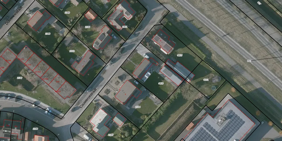 Couwervestraat 7 is gelegen op kadastraal perceel KNG00G3416. Deze kadastrale aanduiding is uniek en wordt gebruikt door het Kadaster om eigendomsrechten en andere zakelijke rechten vast te leggen. Het perceel maakt onderdeel uit van de kadastrale gemeente Kruiningen.