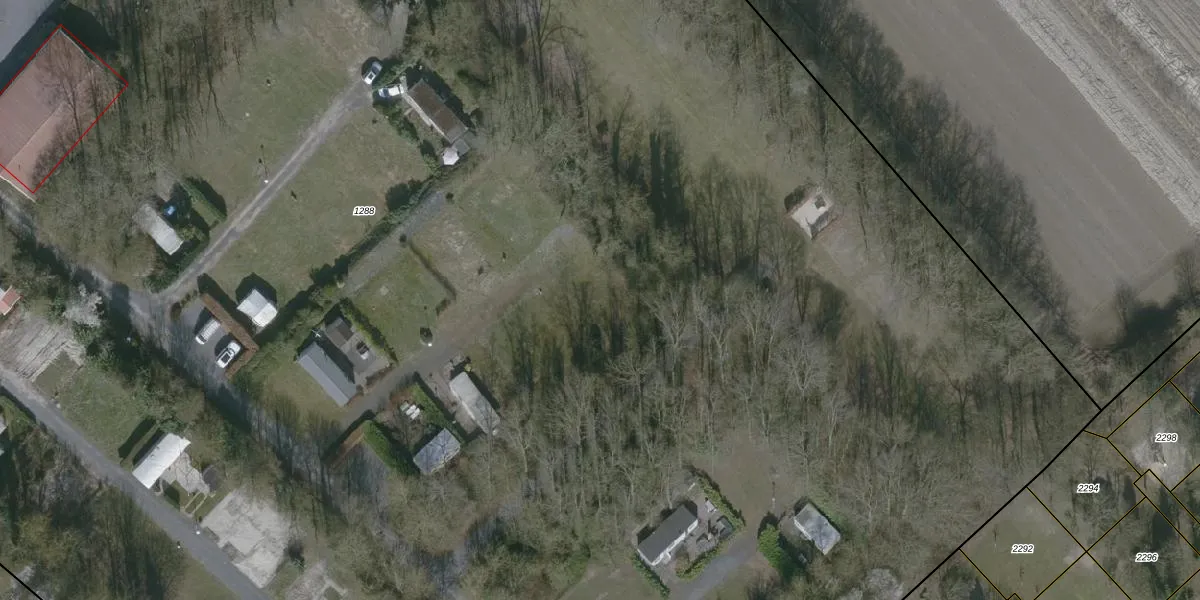 Het adres is gelegen op perceel 1288 in de sectie O en de kadastrale gemeente Kruiningen. De kadastrale aanduiding is aldus KNG00-O-1288. De oppervlakte van het perceel is 3,5 ha. Dat is groter dan gemiddeld in Kruiningen, waar de gemiddelde perceeloppervlakte op 1,5 ha ligt. Het grootste perceel in de kadastrale gemeente is 21,84 km². Het kleinste perceel heeft een oppervlakte van 1 m². Op het perceel liggen in totaal 64 adressen. In de Basisregistratie Kadaster (BRK) werden de grenzen van het perceel geregistreerd op 28-12-2022.