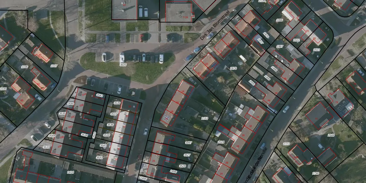 Het perceel waarop Dirk Jan Blomstraat 14 staat heeft een oppervlakte van 968 m². Dit is een groot perceel. De perceeloppervlakte wordt geregistreerd door het Kadaster. Gedetailleerde informatie over de maten van dit perceel kunt u vinden in het rapport Kadastrale kaart met maatvoering van Dirk Jan Blomstraat 14.