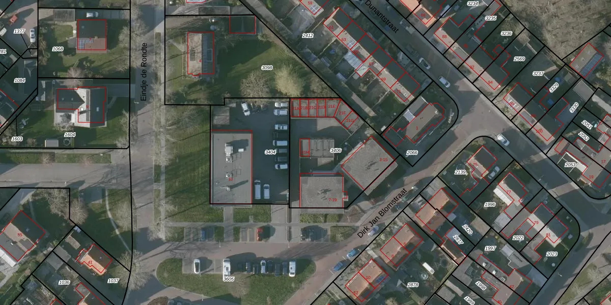 Het perceel waarop Dirk Jan Blomstraat 21-H staat heeft een oppervlakte van 975 m². Dit is een groot perceel. De perceeloppervlakte wordt geregistreerd door het Kadaster. Gedetailleerde informatie over de maten van dit perceel kunt u vinden in het rapport Kadastrale kaart met maatvoering van Dirk Jan Blomstraat 21-H.