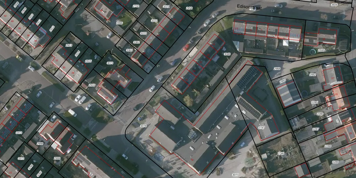 Het perceel waarop Edisonstraat 23 staat heeft een oppervlakte van 2102 m². Dit is een zeer groot perceel. De perceeloppervlakte wordt geregistreerd door het Kadaster. Gedetailleerde informatie over de maten van dit perceel kunt u vinden in het rapport Kadastrale kaart met maatvoering van Edisonstraat 23.