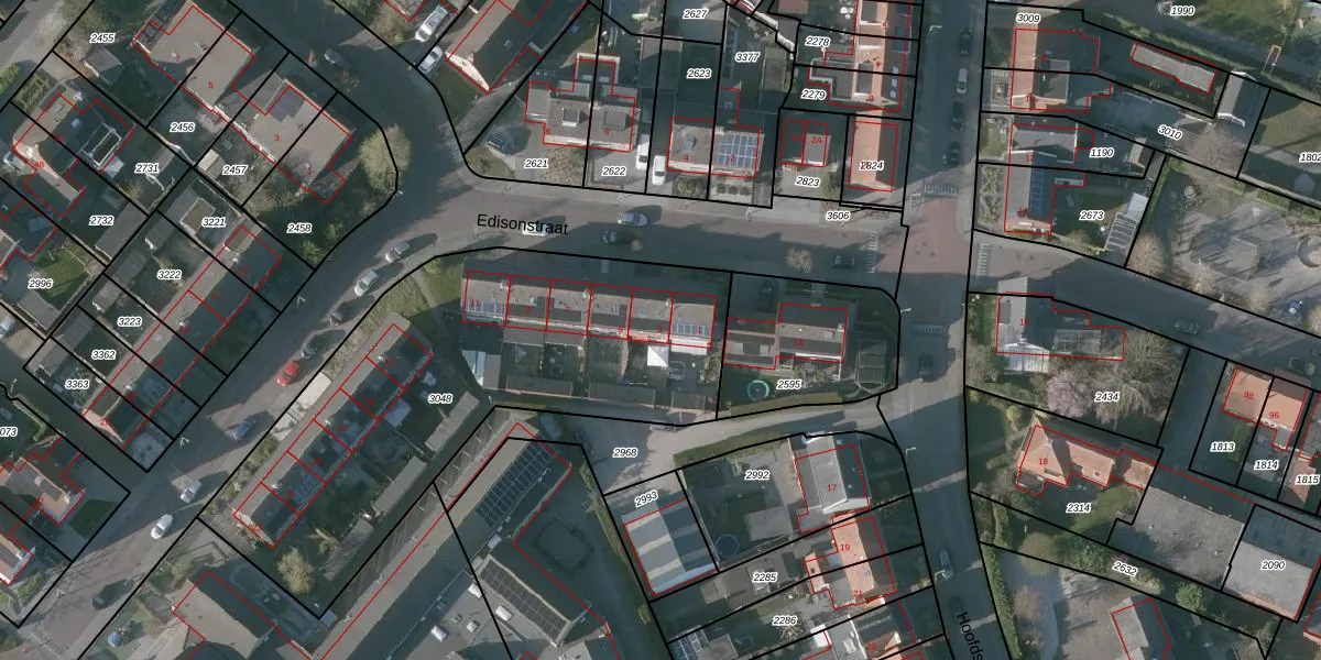 Het perceel waarop Edisonstraat 3 staat heeft een oppervlakte van 2102 m². Dit is een zeer groot perceel. De perceeloppervlakte wordt geregistreerd door het Kadaster. Gedetailleerde informatie over de maten van dit perceel kunt u vinden in het rapport Kadastrale kaart met maatvoering van Edisonstraat 3.
