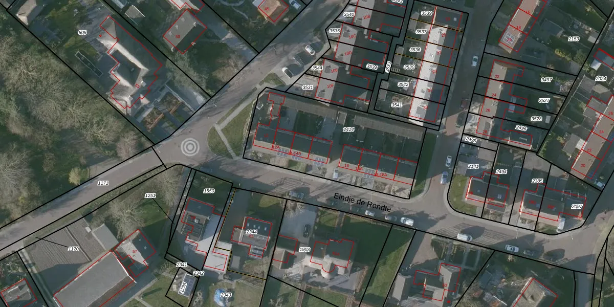 Eindje de Rondte 14-A is gelegen op kadastraal perceel KNG00G2414. Deze kadastrale aanduiding is uniek en wordt gebruikt door het Kadaster om eigendomsrechten en andere zakelijke rechten vast te leggen. Het perceel maakt onderdeel uit van de kadastrale gemeente Kruiningen.