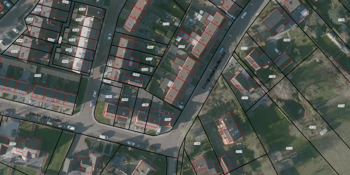 Eindje de Rondte 22 is gelegen op kadastraal perceel KNG00G2024. Deze kadastrale aanduiding is uniek en wordt gebruikt door het Kadaster om eigendomsrechten en andere zakelijke rechten vast te leggen. Het perceel maakt onderdeel uit van de kadastrale gemeente Kruiningen.