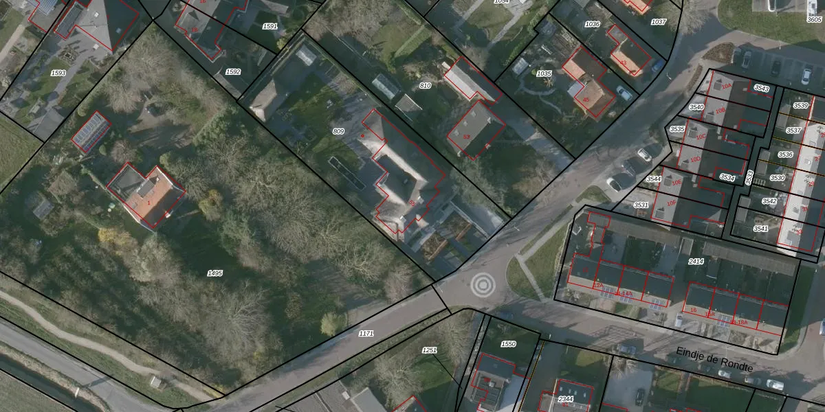 Eindje de Rondte 55 is gelegen op kadastraal perceel KNG00O809. Deze kadastrale aanduiding is uniek en wordt gebruikt door het Kadaster om eigendomsrechten en andere zakelijke rechten vast te leggen. Het perceel maakt onderdeel uit van de kadastrale gemeente Kruiningen.