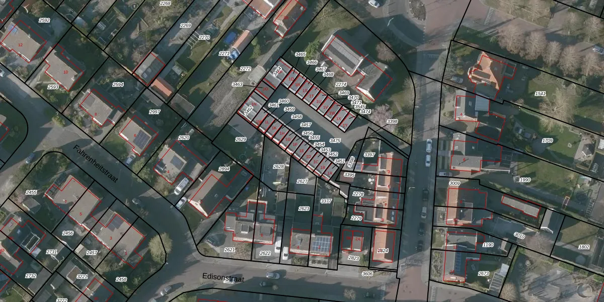 Gebruik de zoekbalk of klik op een perceel voor informatie over de adressen binnen dit perceel.