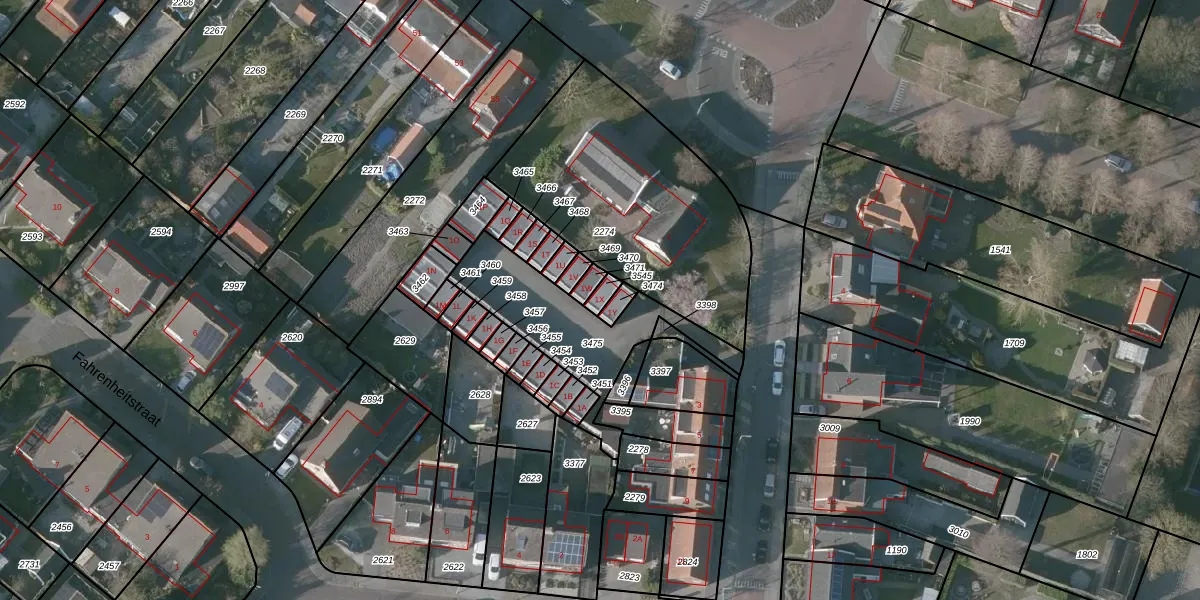 Gebruik de zoekbalk of klik op een perceel voor informatie over de adressen binnen dit perceel.