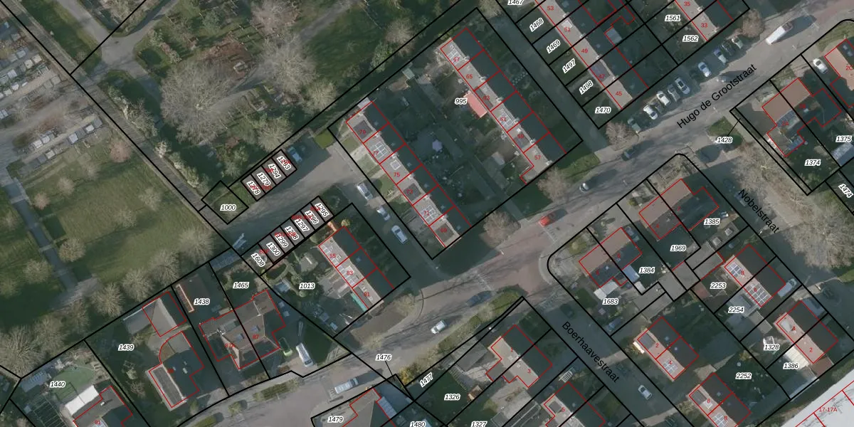 Het perceel waarop Hugo de Grootstraat 71 staat heeft een oppervlakte van 1770 m². Dit is een zeer groot perceel. De perceeloppervlakte wordt geregistreerd door het Kadaster. Gedetailleerde informatie over de maten van dit perceel kunt u vinden in het rapport Kadastrale kaart met maatvoering van Hugo de Grootstraat 71.