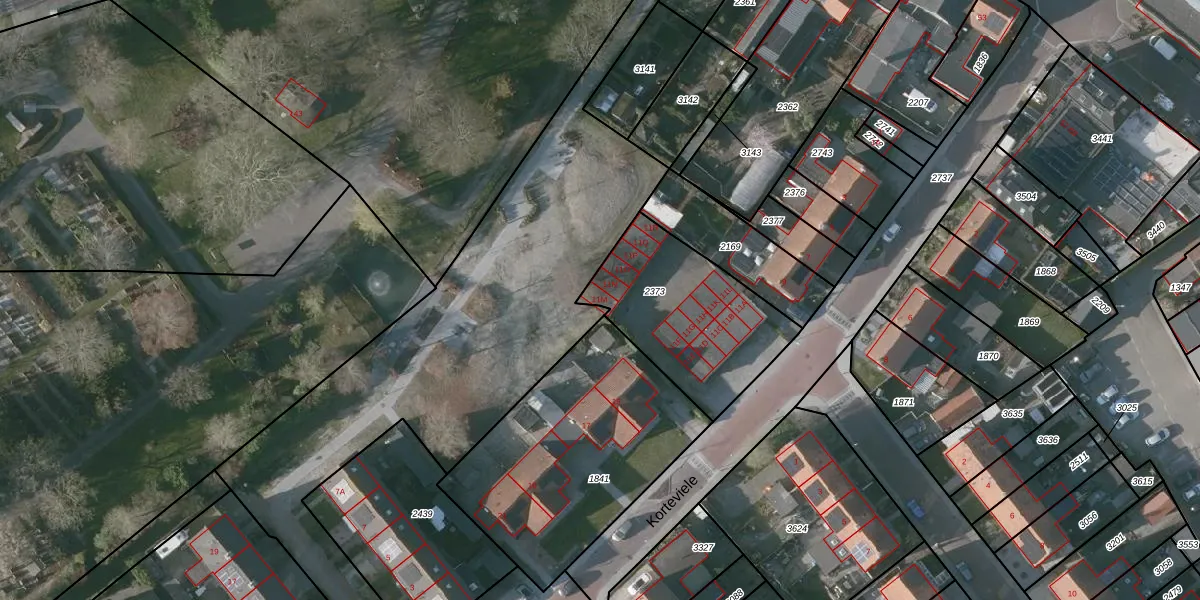 Het perceel waarop Korteviele 11-M staat heeft een oppervlakte van 603 m². Dit is een groot perceel. De perceeloppervlakte wordt geregistreerd door het Kadaster. Gedetailleerde informatie over de maten van dit perceel kunt u vinden in het rapport Kadastrale kaart met maatvoering van Korteviele 11-M.