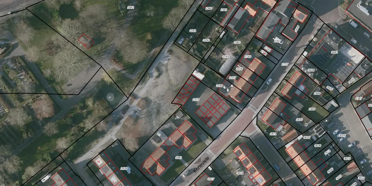 Het perceel waarop Korteviele 11-O staat heeft een oppervlakte van 603 m². Dit is een groot perceel. De perceeloppervlakte wordt geregistreerd door het Kadaster. Gedetailleerde informatie over de maten van dit perceel kunt u vinden in het rapport Kadastrale kaart met maatvoering van Korteviele 11-O.