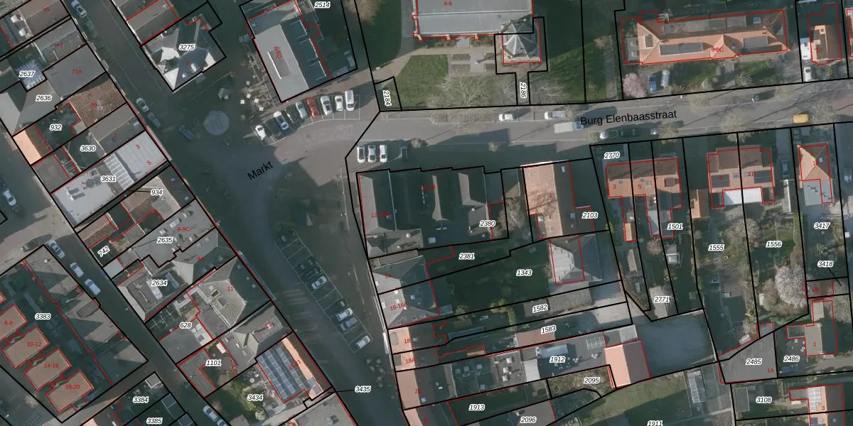 Het perceel waarop Markt 12-B staat heeft een oppervlakte van 615 m². Dit is een groot perceel. De perceeloppervlakte wordt geregistreerd door het Kadaster. Gedetailleerde informatie over de maten van dit perceel kunt u vinden in het rapport Kadastrale kaart met maatvoering van Markt 12-B.
