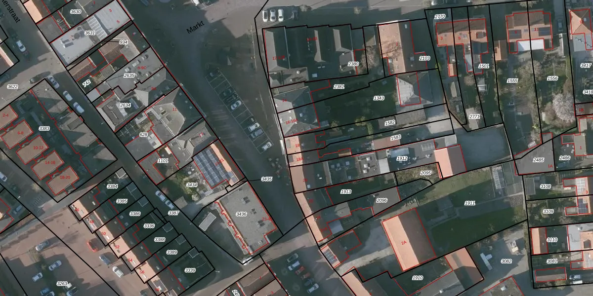 Gebruik de zoekbalk of klik op een perceel voor informatie over de adressen binnen dit perceel.