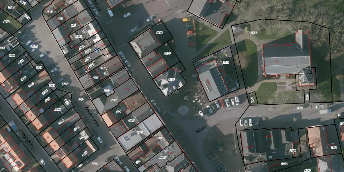 Het perceel waarop Markt 2 staat heeft een oppervlakte van 220 m². Dit is een middelgroot perceel. De perceeloppervlakte wordt geregistreerd door het Kadaster. Gedetailleerde informatie over de maten van dit perceel kunt u vinden in het rapport Kadastrale kaart met maatvoering van Markt 2.
