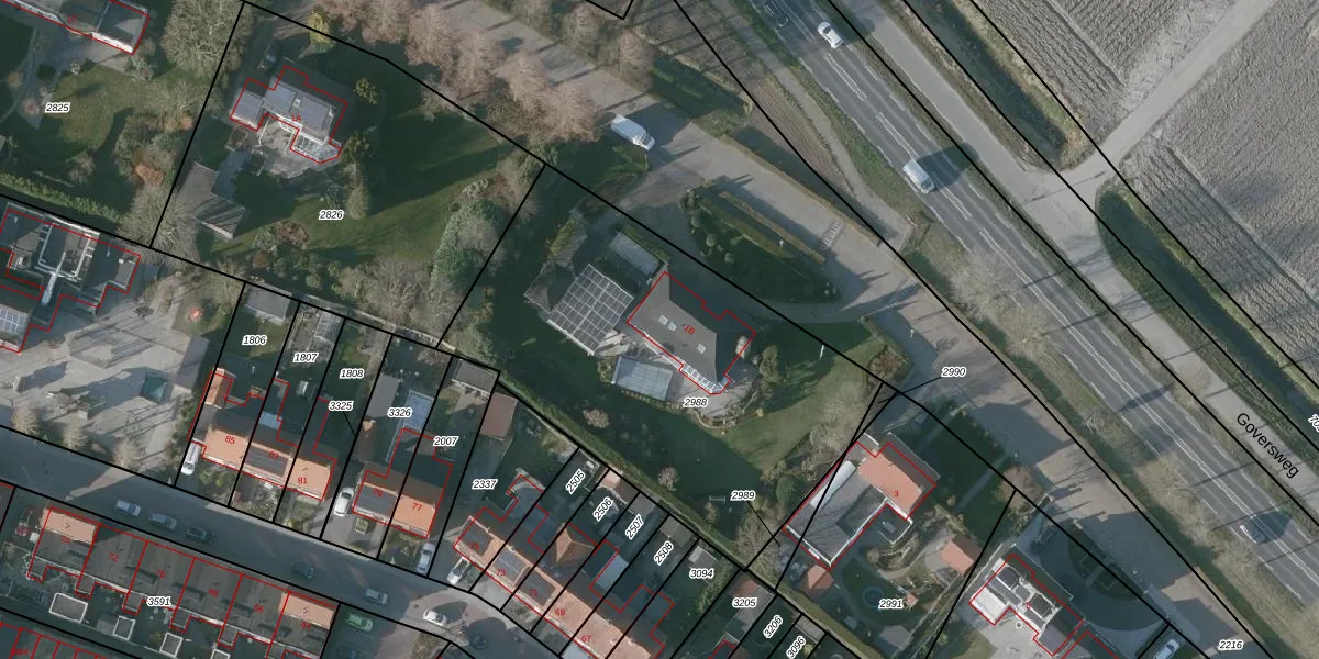 Het adres is gelegen op perceel 2988 in de sectie G en de kadastrale gemeente Kruiningen. De kadastrale aanduiding is aldus KNG00-G-2988. De gemiddelde perceelgrootte in Kruiningen is 1,5 ha. Dit perceel is kleiner: de perceeloppervlakte bedraagt 2005 m². De grootste perceeloppervlakte in de kadastrale gemeente is 21,84 km². De kleinste oppervlakte bedraagt 1 m². Dit is het enige adres dat aanwezig is op het perceel. De laatste wijziging in het de Basisregistratie Kadaster (BRK) was op 17-09-2009.