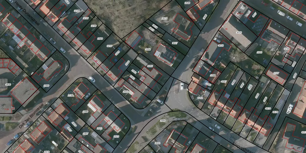 Gebruik de zoekbalk of klik op een perceel voor informatie over de adressen binnen dit perceel.