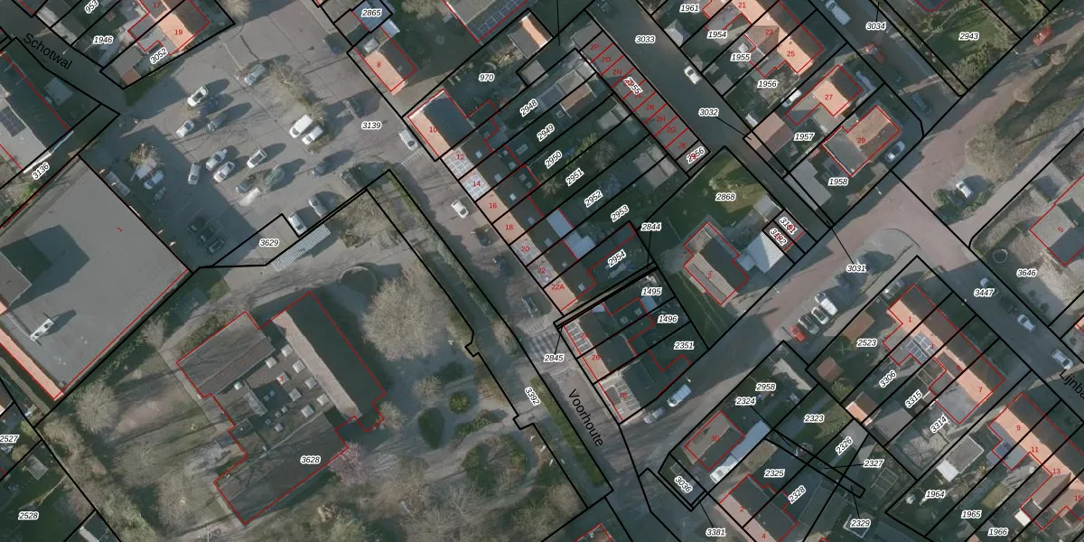 Het perceel waarop Voorhoute 22 staat heeft een oppervlakte van 196 m². Dit is een middelgroot perceel. De perceeloppervlakte wordt geregistreerd door het Kadaster. Gedetailleerde informatie over de maten van dit perceel kunt u vinden in het rapport Kadastrale kaart met maatvoering van Voorhoute 22.