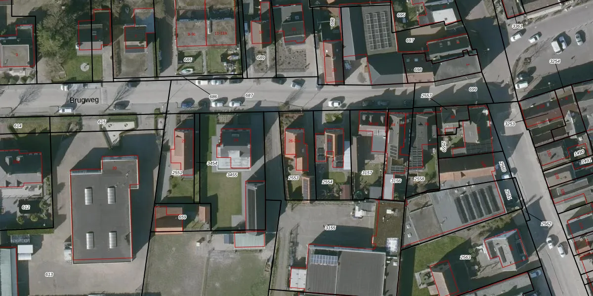 Brugweg 26-a is gelegen op kadastraal perceel SBG02K2553. Deze kadastrale aanduiding is uniek en wordt gebruikt door het Kadaster om eigendomsrechten en andere zakelijke rechten vast te leggen. Het perceel maakt onderdeel uit van de kadastrale gemeente Steenbergen.