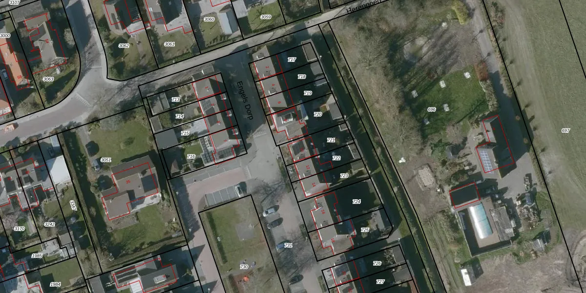 Het perceel waarop Engels Dorp 10 staat heeft een oppervlakte van 184 m². Dit is een middelgroot perceel. De perceeloppervlakte wordt geregistreerd door het Kadaster. Gedetailleerde informatie over de maten van dit perceel kunt u vinden in het rapport Kadastrale kaart met maatvoering van Engels Dorp 10.