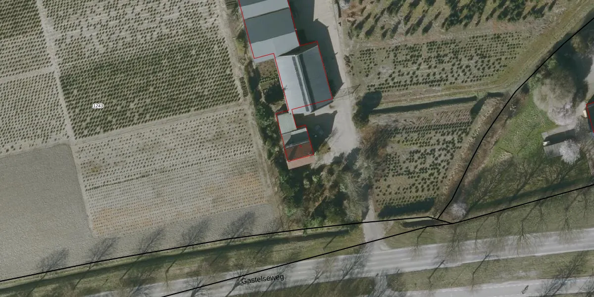 Het perceel waarop Gastelseweg 5 staat heeft een oppervlakte van 2,6 ha. Dit is een zeer groot perceel. De perceeloppervlakte wordt geregistreerd door het Kadaster. Gedetailleerde informatie over de maten van dit perceel kunt u vinden in het rapport Kadastrale kaart met maatvoering van Gastelseweg 5.