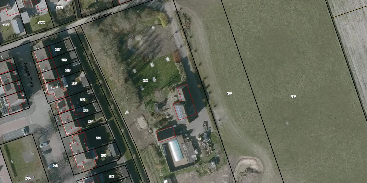 Het perceel waarop Herengoed 4 staat heeft een oppervlakte van 6320 m². Dit is een zeer groot perceel. De perceeloppervlakte wordt geregistreerd door het Kadaster. Gedetailleerde informatie over de maten van dit perceel kunt u vinden in het rapport Kadastrale kaart met maatvoering van Herengoed 4.