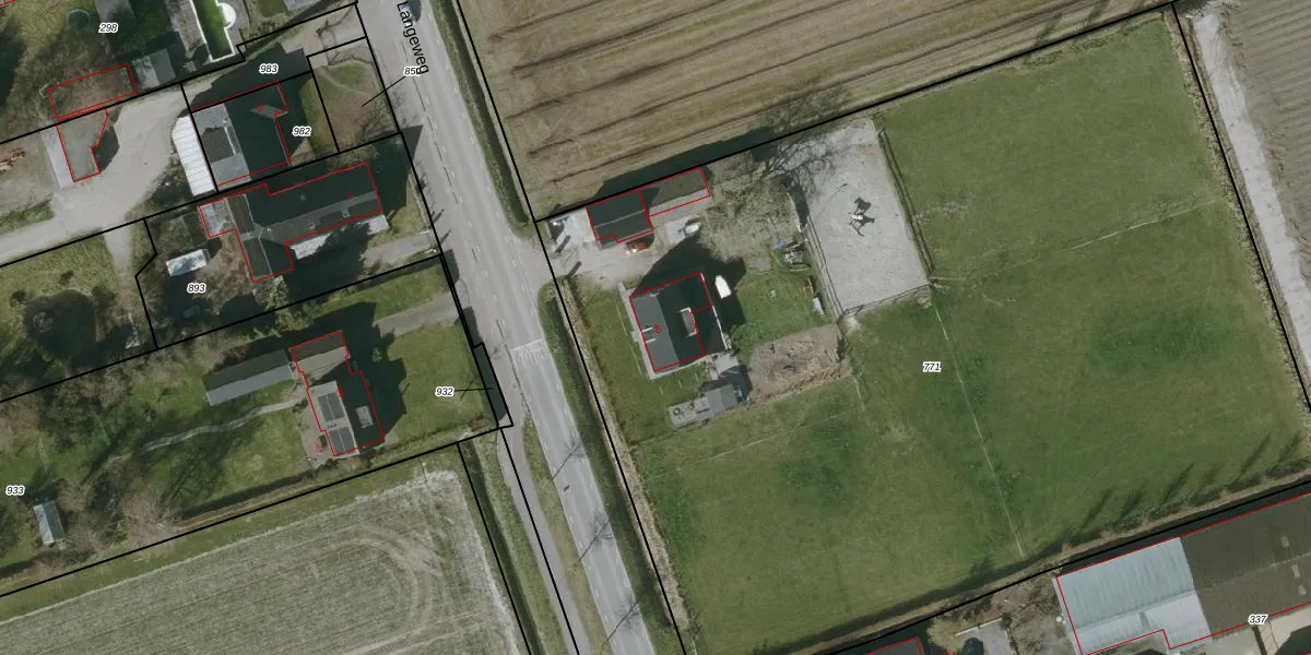 Het perceel waarop Langeweg 40 staat heeft een oppervlakte van 7805 m². Dit is een zeer groot perceel. De perceeloppervlakte wordt geregistreerd door het Kadaster. Gedetailleerde informatie over de maten van dit perceel kunt u vinden in het rapport Kadastrale kaart met maatvoering van Langeweg 40.