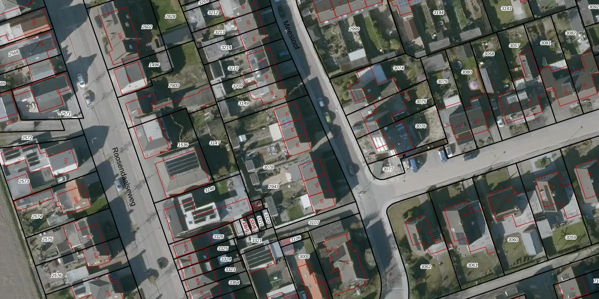 Meestoof 46 is gelegen op kadastraal perceel SBG02K3078. Deze kadastrale aanduiding is uniek en wordt gebruikt door het Kadaster om eigendomsrechten en andere zakelijke rechten vast te leggen. Het perceel maakt onderdeel uit van de kadastrale gemeente Steenbergen.