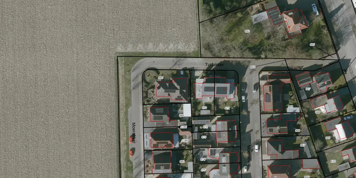 Het perceel waarop Turfakker 1 staat heeft een oppervlakte van 514 m². Dit is een groot perceel. De perceeloppervlakte wordt geregistreerd door het Kadaster. Gedetailleerde informatie over de maten van dit perceel kunt u vinden in het rapport Kadastrale kaart met maatvoering van Turfakker 1.
