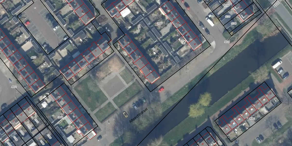 Het perceel waarop Albrechtstraat 2 staat heeft een oppervlakte van 2947 m². Dit is een zeer groot perceel. De perceeloppervlakte wordt geregistreerd door het Kadaster. Gedetailleerde informatie over de maten van dit perceel kunt u vinden in het rapport Kadastrale kaart met maatvoering van Albrechtstraat 2.