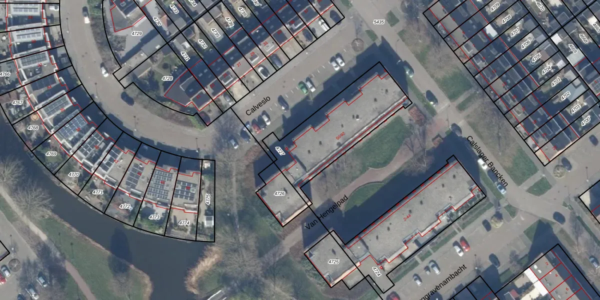 Het perceel waarop Calveslo 82 staat heeft een oppervlakte van 825 m². Dit is een groot perceel. De perceeloppervlakte wordt geregistreerd door het Kadaster. Gedetailleerde informatie over de maten van dit perceel kunt u vinden in het rapport Kadastrale kaart met maatvoering van Calveslo 82.