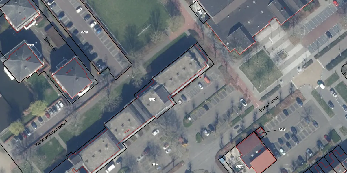 Het perceel waarop Edisonstraat 16 staat heeft een oppervlakte van 2277 m². Dit is een zeer groot perceel. De perceeloppervlakte wordt geregistreerd door het Kadaster. Gedetailleerde informatie over de maten van dit perceel kunt u vinden in het rapport Kadastrale kaart met maatvoering van Edisonstraat 16.