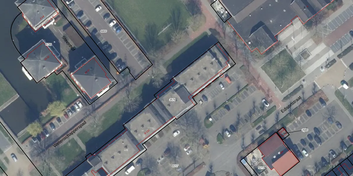 Het perceel waarop Edisonstraat 56-a staat heeft een oppervlakte van 2277 m². Dit is een zeer groot perceel. De perceeloppervlakte wordt geregistreerd door het Kadaster. Gedetailleerde informatie over de maten van dit perceel kunt u vinden in het rapport Kadastrale kaart met maatvoering van Edisonstraat 56-a.