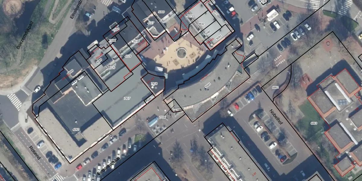 Het perceel waarop Einsteinstraat 115 staat heeft een oppervlakte van 919 m². Dit is een groot perceel. De perceeloppervlakte wordt geregistreerd door het Kadaster. Gedetailleerde informatie over de maten van dit perceel kunt u vinden in het rapport Kadastrale kaart met maatvoering van Einsteinstraat 115.