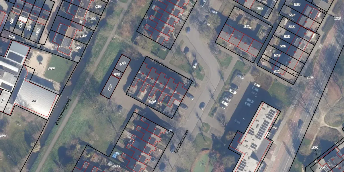 Het perceel waarop Einsteinstraat 50 staat heeft een oppervlakte van 758 m². Dit is een groot perceel. De perceeloppervlakte wordt geregistreerd door het Kadaster. Gedetailleerde informatie over de maten van dit perceel kunt u vinden in het rapport Kadastrale kaart met maatvoering van Einsteinstraat 50.
