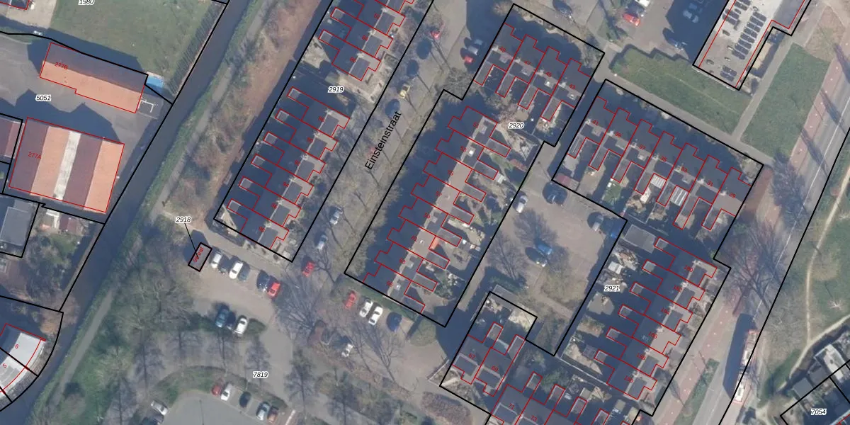 Het perceel waarop Einsteinstraat 59 staat heeft een oppervlakte van 1942 m². Dit is een zeer groot perceel. De perceeloppervlakte wordt geregistreerd door het Kadaster. Gedetailleerde informatie over de maten van dit perceel kunt u vinden in het rapport Kadastrale kaart met maatvoering van Einsteinstraat 59.