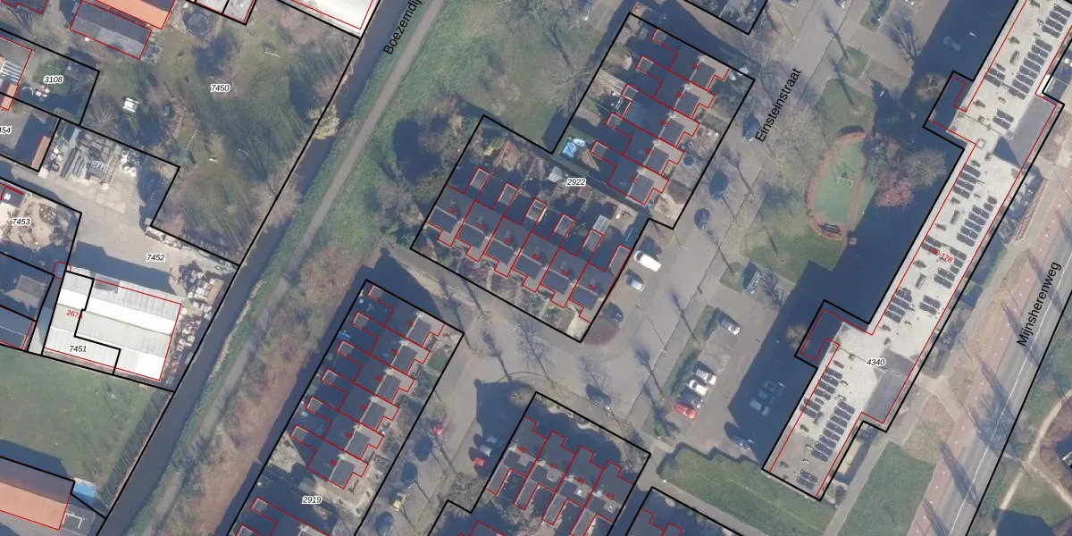 Het perceel waarop Einsteinstraat 68 staat heeft een oppervlakte van 1877 m². Dit is een zeer groot perceel. De perceeloppervlakte wordt geregistreerd door het Kadaster. Gedetailleerde informatie over de maten van dit perceel kunt u vinden in het rapport Kadastrale kaart met maatvoering van Einsteinstraat 68.