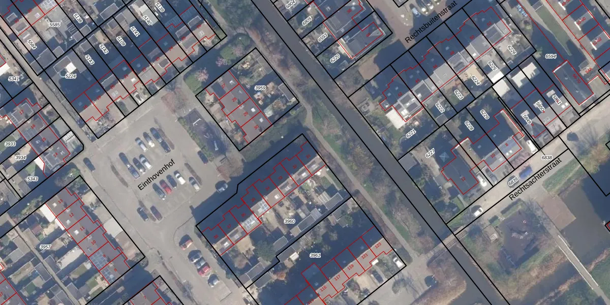 Het perceel waarop Einthovenhof 31 staat heeft een oppervlakte van 1200 m². Dit is een zeer groot perceel. De perceeloppervlakte wordt geregistreerd door het Kadaster. Gedetailleerde informatie over de maten van dit perceel kunt u vinden in het rapport Kadastrale kaart met maatvoering van Einthovenhof 31.
