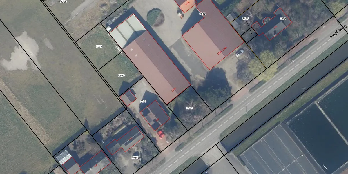 Het perceel waarop Hoofdweg 128-E staat heeft een oppervlakte van 6586 m². Dit is een zeer groot perceel. De perceeloppervlakte wordt geregistreerd door het Kadaster. Gedetailleerde informatie over de maten van dit perceel kunt u vinden in het rapport Kadastrale kaart met maatvoering van Hoofdweg 128-E.